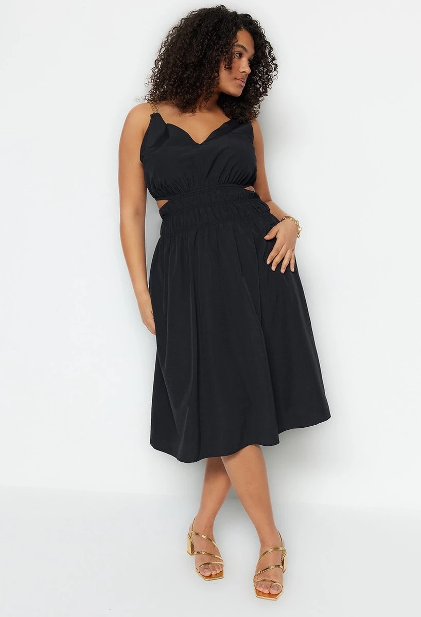 Trendyol Vrouwen Standaard Mouw V-hals Schaatser Grote Maten Jurk