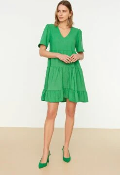 Trendyol Vrouwen Standaard Mouw V-hals Verschuiving Jurk