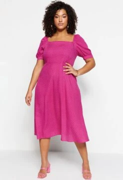 Trendyol Vrouwen Standaard Mouw Vierkante Kraag A-lijn Grote Maten Jurk