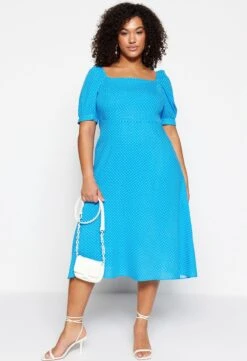 Trendyol Vrouwen Standaard Mouw Vierkante Kraag A-lijn Plus Size Jurk