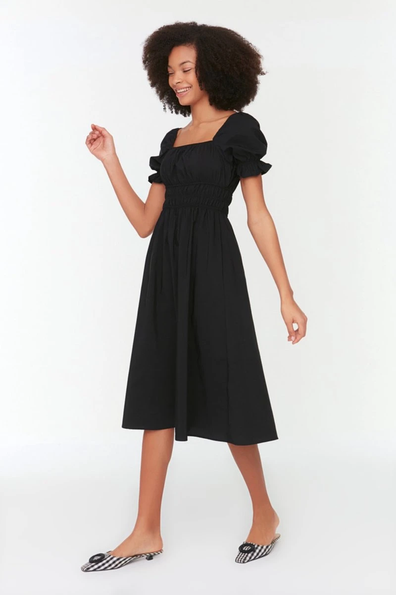 Trendyol Vrouwen Standaard Mouw Vierkante Kraag Schaatser Jurk