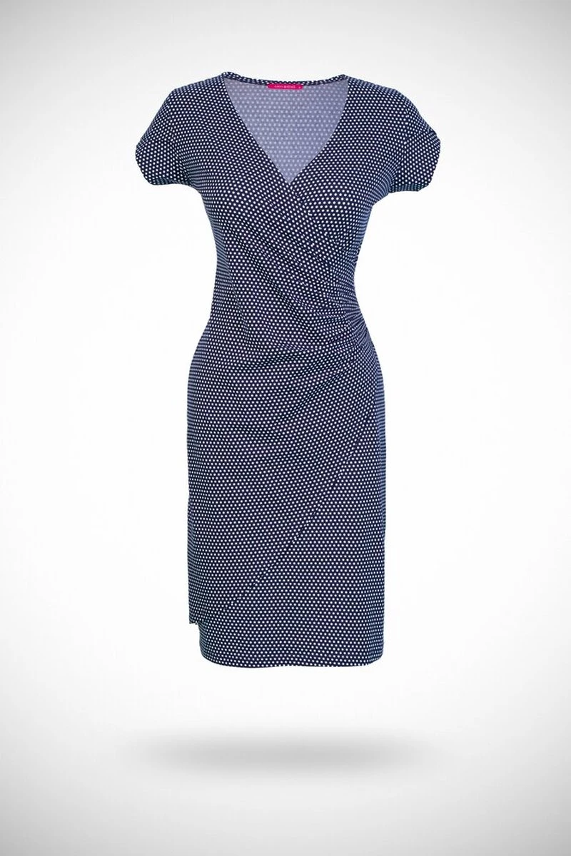 Tricot Wrap Jurk Korte Mouw Dot Marine