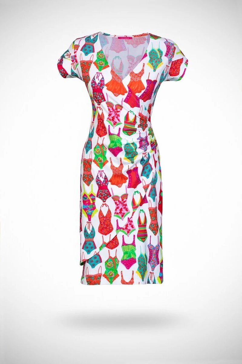 De Buenos Aires jurk met korte cap mouw, heeft een slimme draperie bij de taille, ideaal om de oneffenheden rondom de buik te verstoppen ;-). De samenstelling van de stof is 95% biologisch katoen en 5% elastaan, kan alleen gewassen worden in de wasmachine tot 30°C. Maattabel: oksel tot oksel (OTO) en lengte:Maat S: 45 cm, 96 cmMaat M: 48 cm, 101 cmMaat L: 50 cm, 102 cmMaat XL: 53 cm, 103 cmMaat 2XL: 56 cm, 104 cm