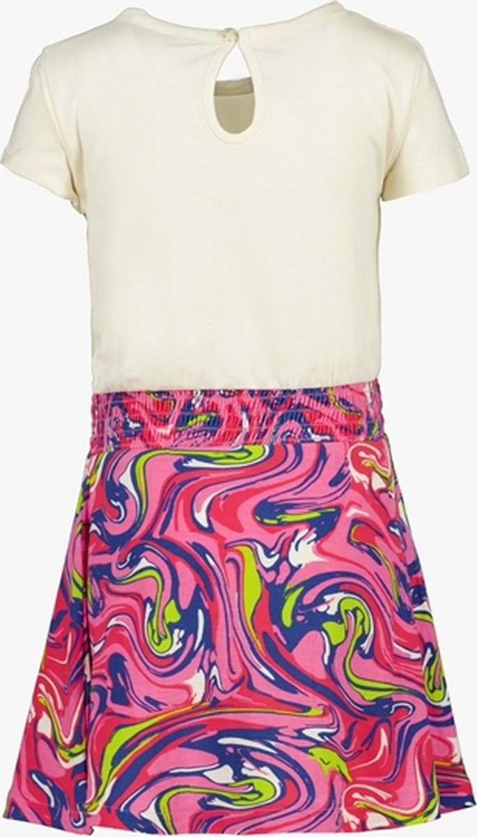 Sparkle like a unicorn met dit mooie meisjes jurkje. Voorzien van korte mouwen, een ronde hals met knoopje in de nek en elastiek in de taille. Voorzien van een mulitcolor print op de rok en unicorn print aan de voorzijde. Het jurkje is gemaakt van 95% viscose en 5% elastaan.