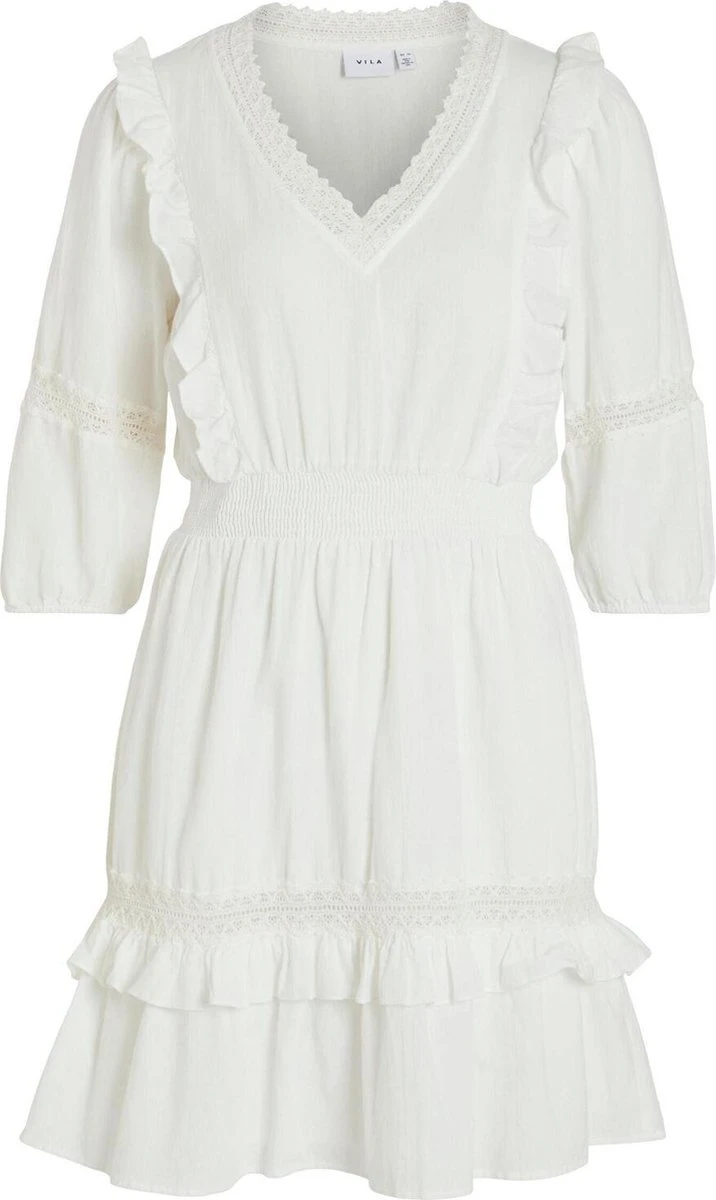 Vila Jurk Viakacia 3/4 V-neck Short Dress/wc 14083703 Cloud Dancer Dames Maat – 44