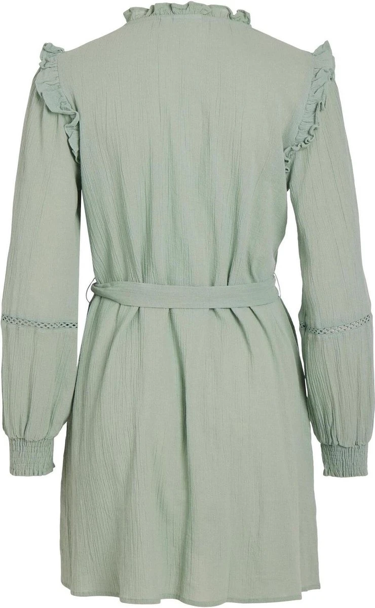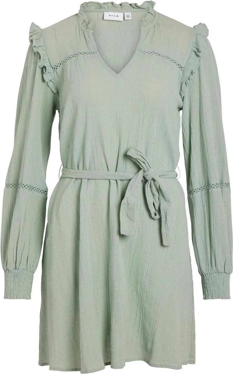Vila Jurk Vialia V-neck L/s Short Dress 14085227 Green Milieu Dames Maat – 36