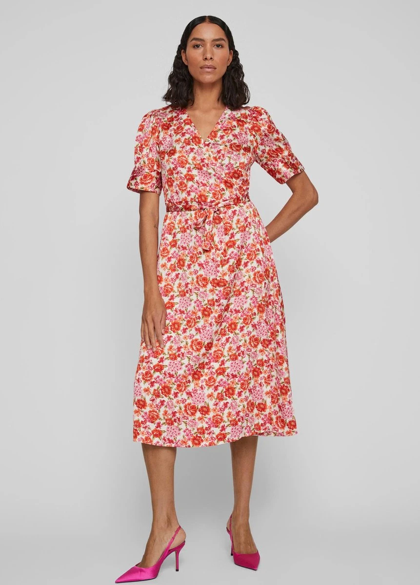 Vila Jurk Vinaria S/s Wrap Midi Dress/dc/su 14083215 Tigerlily/mis Dames Maat – 38