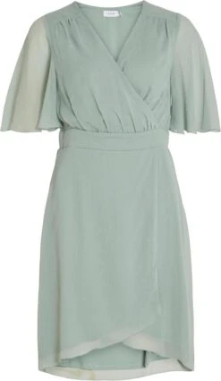 Vila Jurk Virilla V-neck 2/4 Short Dress/bm/d 14083771 Green Milieu Dames Maat – 40