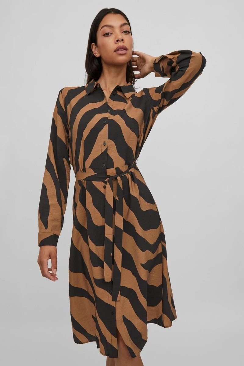 VILA VIDOGMA ZEB L/S MID CALF SHIRT DRESS/SU Dames Jurk – Maat 36