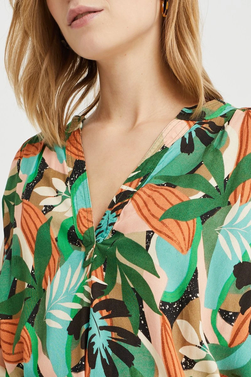 Een regular fit jurk van viscose met dessin en een strikceintuur. Het model heeft een V-hals, lange mouwen en split aan de zijkant.