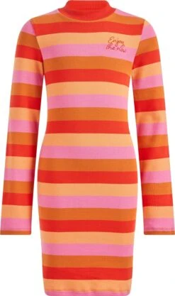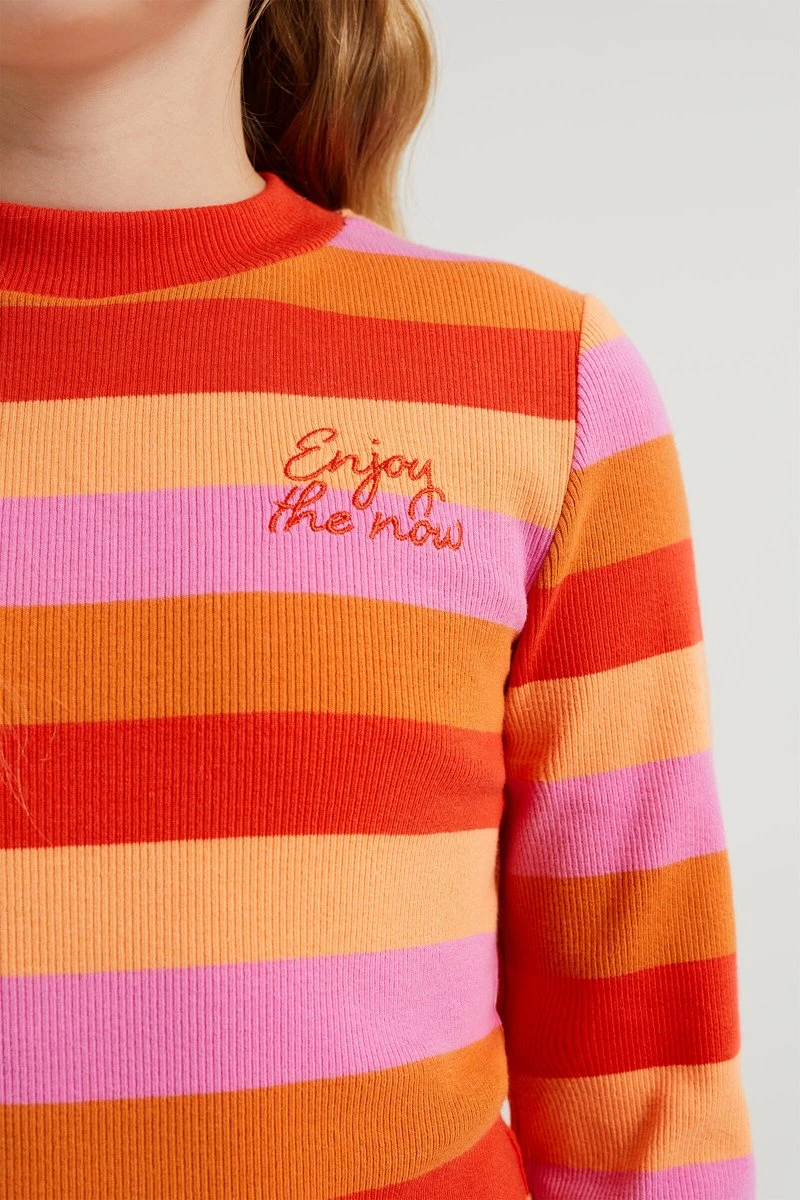 WE Fashion Meisjes Gestreepte Jurk Met Ribstructuur – Maat 110/116