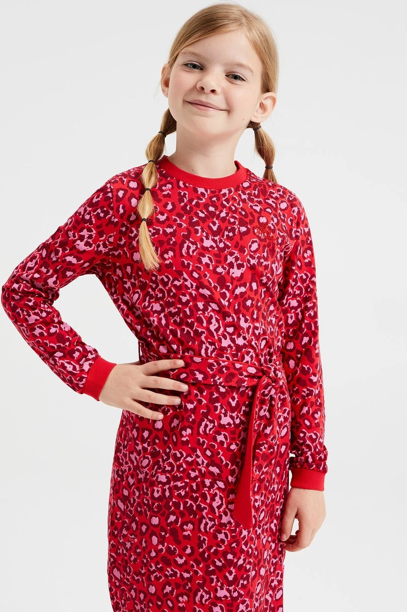 WE Fashion Meisjes Jurk Met Dessin En Strikceintuur – Maat 110/116
